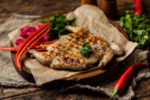Rozmrozić warzywa. Na patelni rozgrzać 2 łyżeczki oleju kokosowego i przyrumienić kotlet wołowy. Ugotuj warzywa według własnego gustu.